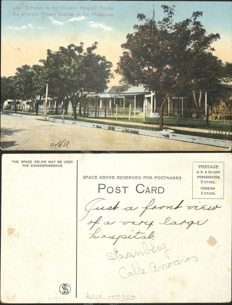 Subject: This is likely the military hospital at Calle Arroceros and Calle Conception in Ermita near Intamuros, later known as Sternberg Hospital. See also OFI-001889 for another image of this builin