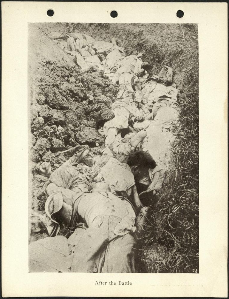 Subject: Dead Filipino soldiers lie in their trench on the battlefield. Givens was the post photographer at the Presidio of San Francisco starting in 1899. In 1900 he traveled to the Phil