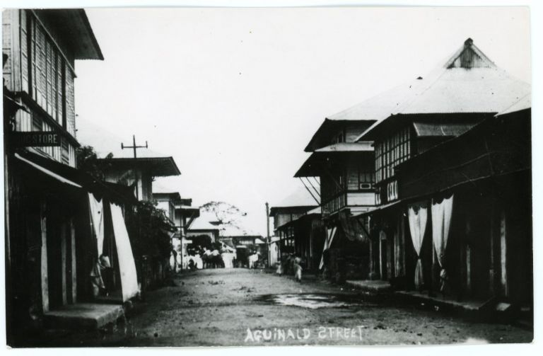 Stores and shops on Aguinaldo Street in an unnamed Philippine town (possibly Batangas).