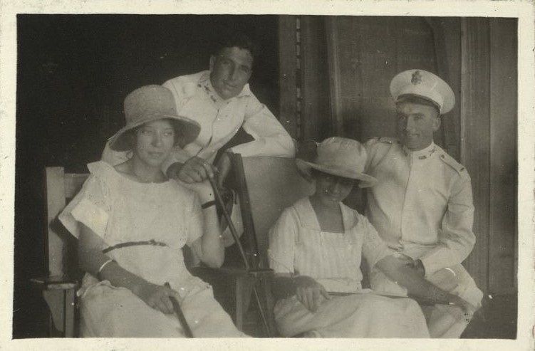 April 18, 1920. With Lt. & Mrs. Haggelstein at Caballo [Island]. Capt. Adams, C.O. Everybody happy. [Officers and wives].