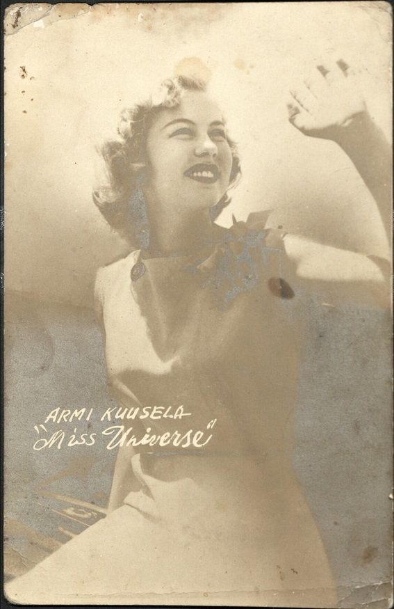 Subject: Armi Kuusela from Finland was the first Miss Universe, crowned in 1952. On her subsequent around-the-world tour she met and married a Filipino in 1953, relinquished her crown, and lived in Ma