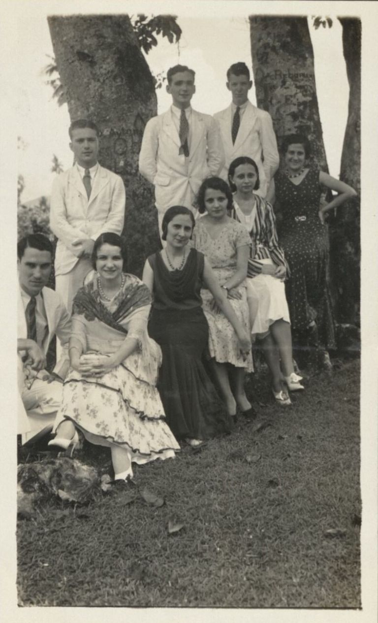 Back row: A. [Agustin] Vallejo. A. [Alfred] Cerquella, C. [Carlos] Cerquella, and myself [Harry Hawkins, Jr.]. Front row: L. [Luisita] Gimenez, M. [Mary] Vallejo, Carmen Herrero, Paquita Herrero, and C. [Carmen] Vallejo.