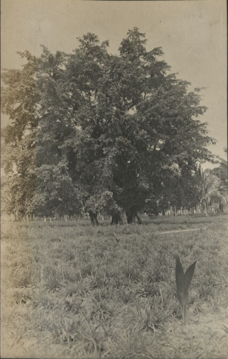 Subject: A Banyan tree is a member of the fig family, and usually its seeds get dropped by birds onto other trees or structures, growing to strangle its host. Here the trees appear to be in a field of
