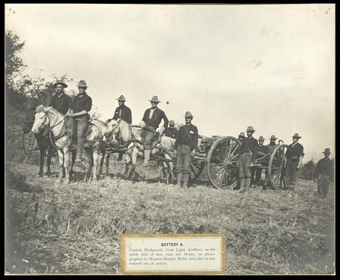 Subject: Full caption continues: "Captain Wedgewood, Utah Light Artillery, on the battle field of San Juan del Monte, as photographed by Wanton Stanley Webb, just after it was ordered out of action
