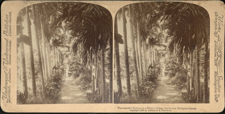 Underwood #U280. Coconut trees line shady path to barely seen cottage.