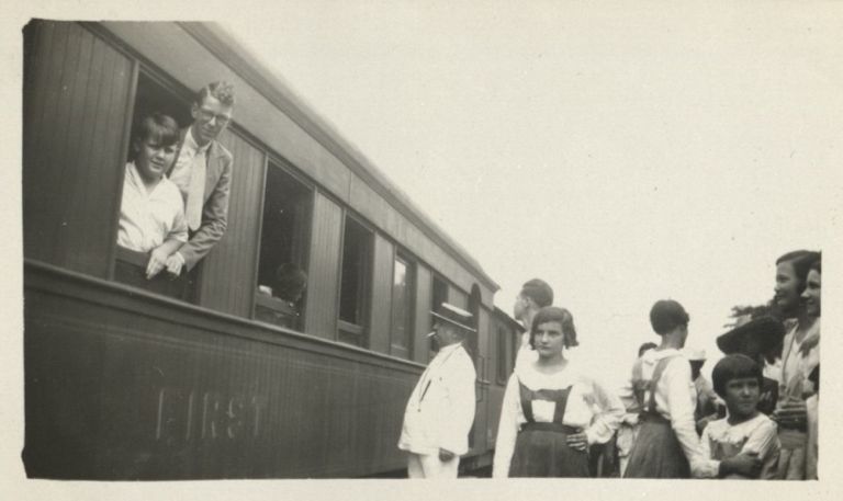 Subject: Bob and Harry Jr. depart on a rail car, likely at Daraga, Albay. Perhaps they are returning from Albay to boarding at Brent School, Baguio.