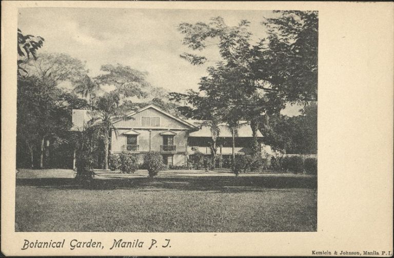 Subject: Superintendent�s residence, trees, and shrubs in Mehan Botanical Gardens, Manila.