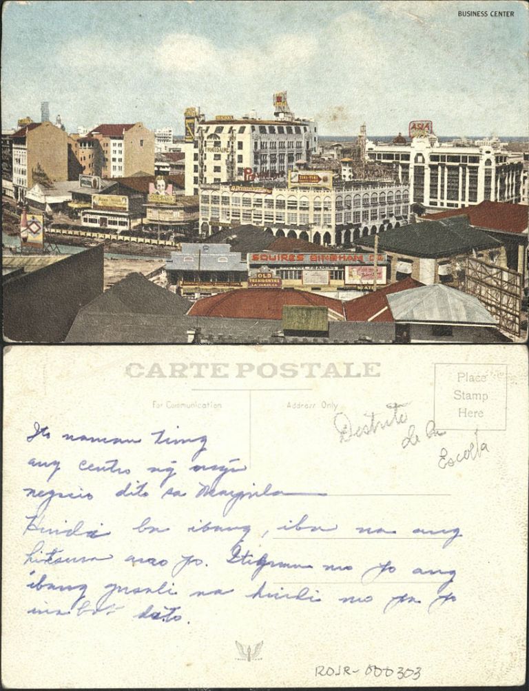 Subject: Multi-story commercial buildings in Escolta area along Pasig River, Squires Bingham Co. center.