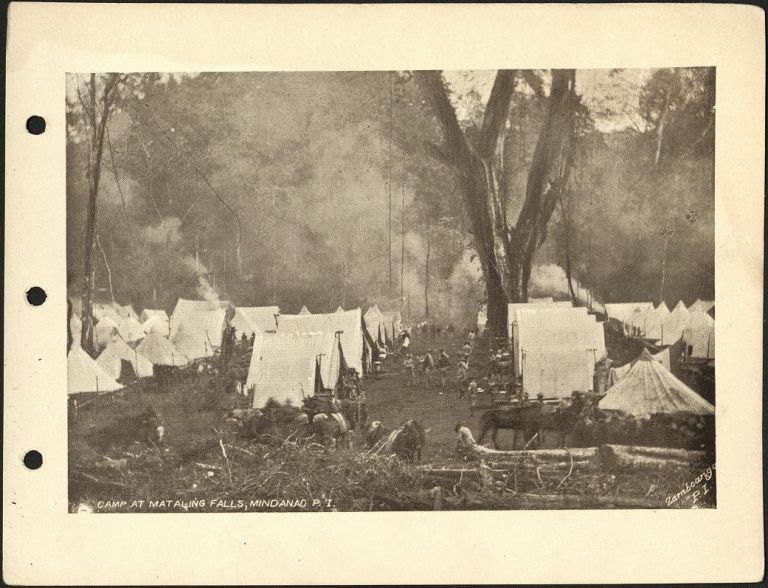 Subject: U.S. Army encampment on Mataling River near Malabang, Lanao del Sur. The U.S. Army established Camp Vicars near here after the Battle of Bayan with native Moros in 1902. Attribut