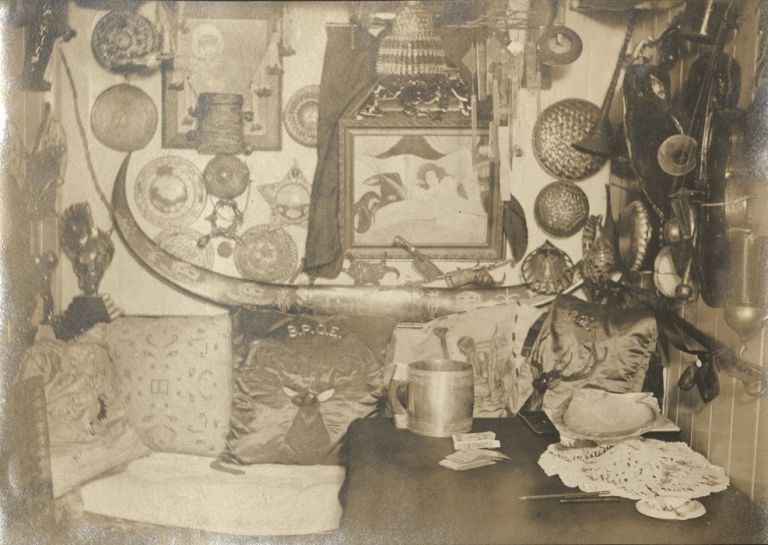 Subject: Captain W.C. Barclay's stateroom, cluttered with travel treasures. The "Liscum" was a U.S. Army Transport used for interisland (rather than transpacific) use. The "Liscum" was launched in 187