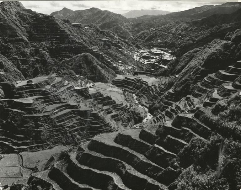 Subject: Famous Philippine rice terraces carved into mountainsides hundreds of years ago. Full caption missing. This image was published in Florence Horn, "Orphans of the Pacific" (1941) and captioned