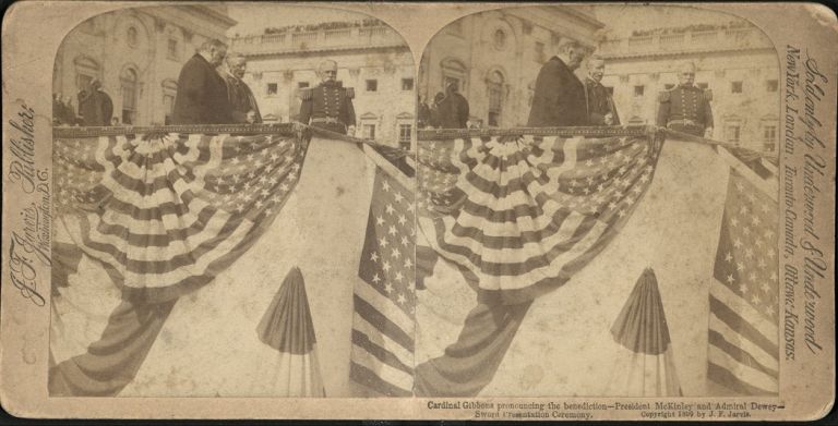 Cardinal Gibbons pronouncing the benediction - President McKinley and Admiral Dewey - Sword Presentation Ceremony.