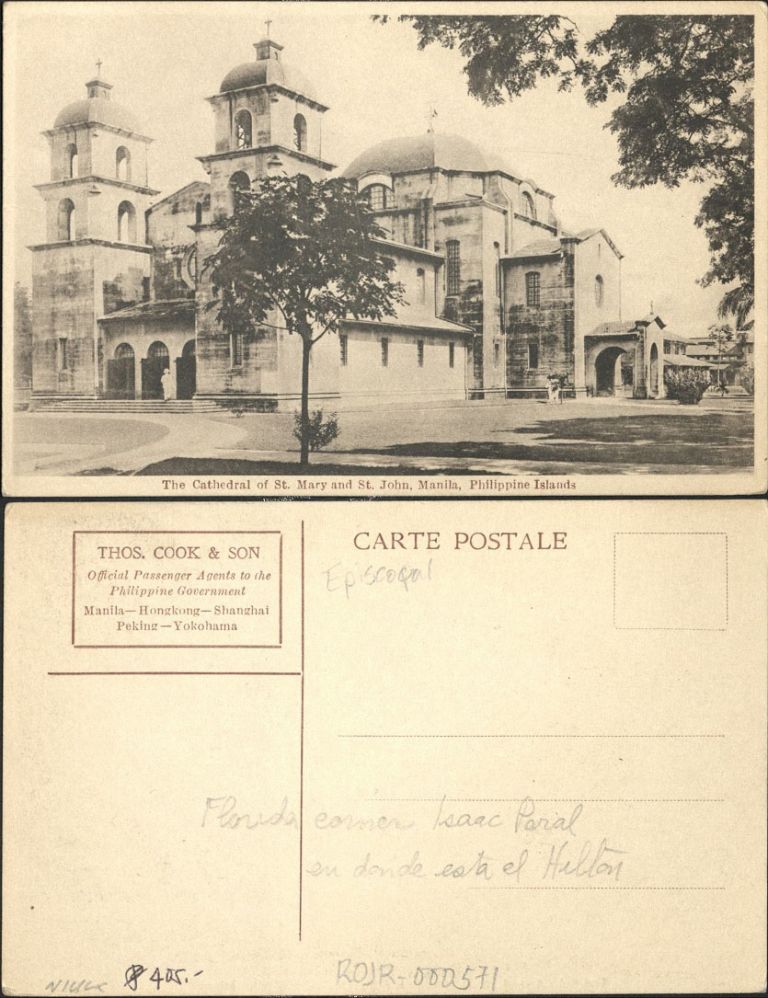 Subject: Built primarily to serve the American community in Manila, the Cathedral of St. Mary & St. John was destroyed during World War II and later rebuilt in Quezon City.