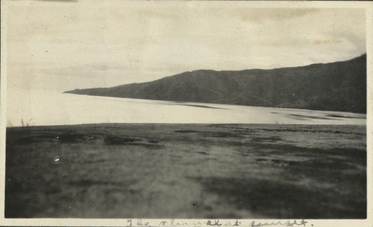 Subject: Sunset on Subic Bay seen from a hidden coastal artillery battery at Fort Mills or Fort Wint - see also OFI-000017, this would appear by geography to be Fort Wint on Grande Island.