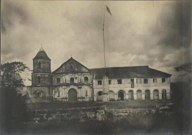 Subject: A U.S. flag flies in front of the Church of Pila also known as the San Antonio de Padua Parish Church in Laguna Province. During the Philippine-American War, American soldiers used