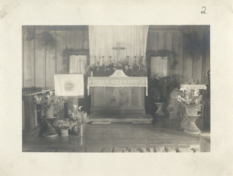 Subject: View of the altar in a chapel, perhaps at Brent School Baguio. The Episcopalian Bishop Charles Henry Brent founded Brent School Baguio in 1909. Originally a boarding school for the sons (only
