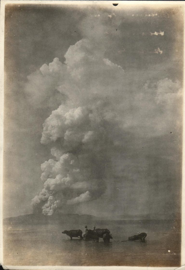 Subject: Taal volcano emitting huge ash and steam cloud. There was a major, destructive eruption on Jan 30, 1911 (seen elsewhere in the OFI Images collection), perhaps this is the same one. See also O