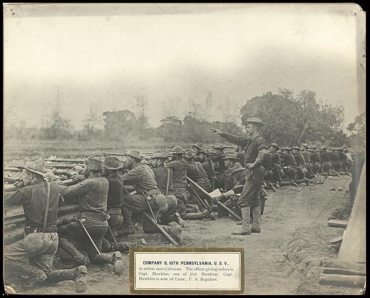 Company D, 10th Pennsylvania, U.S.V. in action near Caloocan. (...)