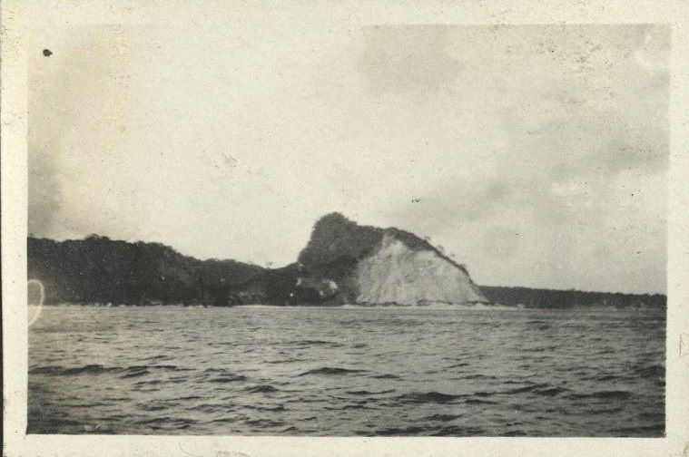Subject: The rocky mass of Corregidor Island as seen from a ship on Manila Bay. Corregidor and Caballo Islands are believed to be the rims of the ancient Corregidor Caldera.