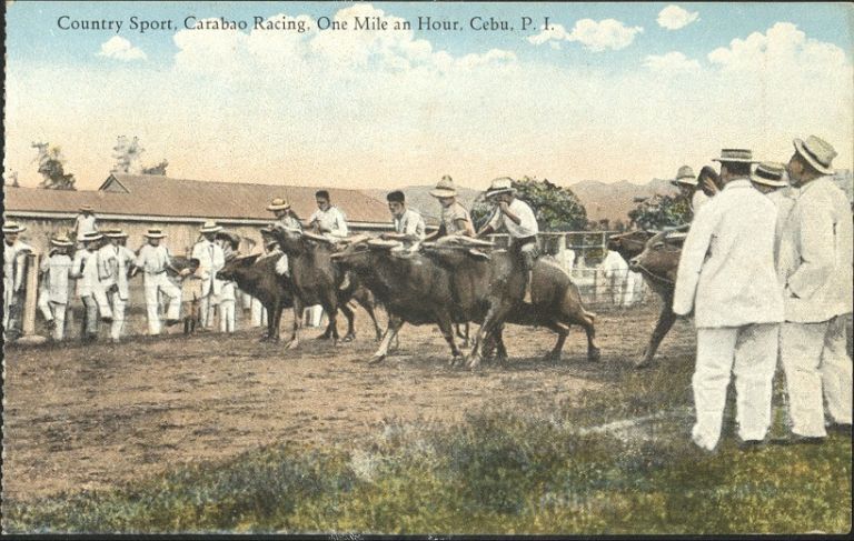 Country sport, carabao racing, one mile an hour, Cebu, P. I.