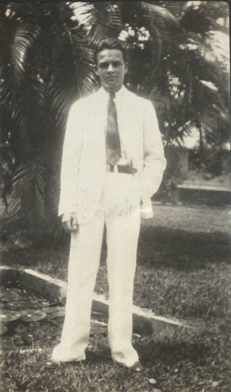 Subject: "Crom" (Wallace Cromwell Palmer III) at Brent School in an outfit so white he appears to glow. Crom's life story can be seen at: http://www.legacy.com/obituaries/tcpalm/obituary.aspx?pid=1055