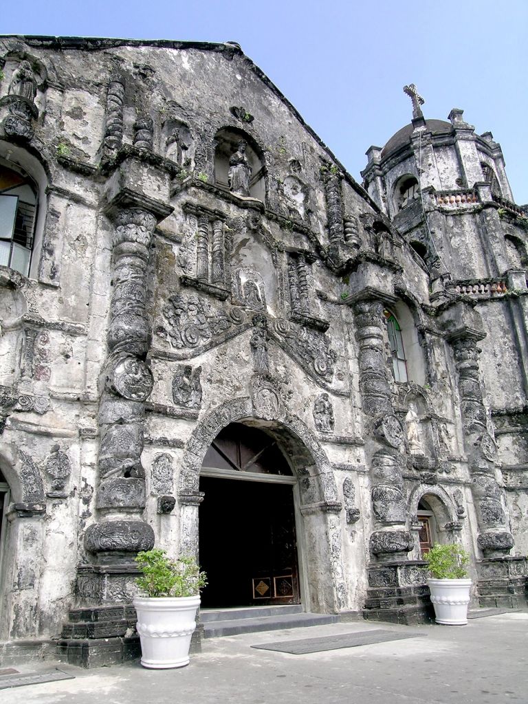 Subject: Front doorway and detailed carving on facade of Daraga Church. Nuestra Se�ora de la Porteria Parish Church, commonly known as Daraga Church, is in Daraga, Albay. Daraga was established by p