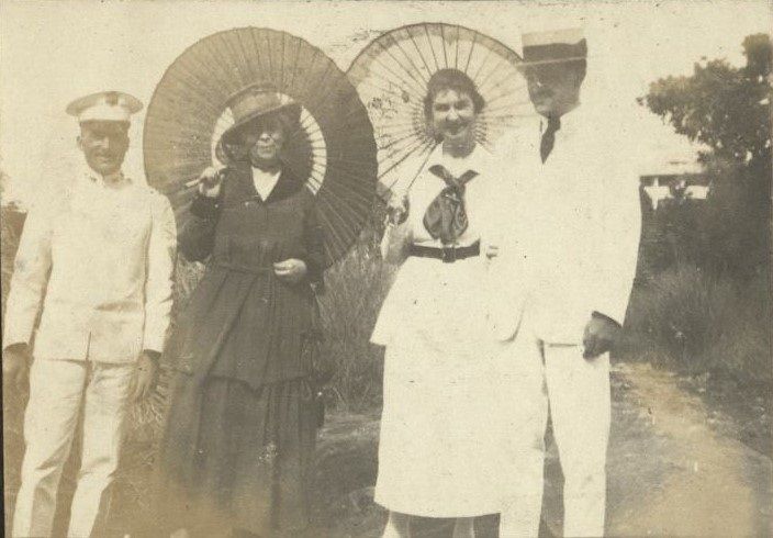 Subject: This image is the strongest evidence that Billie is William Kincaid. Group photo of the Kincaids in Manila, Billie in a navy uniform, the ladies with parasols.