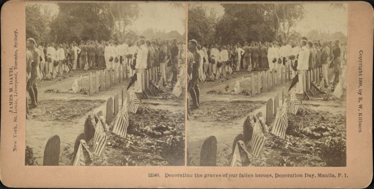 Kilburn #B13540. U.S. soldiers and American civilians stand among decorated graves of fallen American soldiers in Manila on Memorial Day, originally called Decoration Day.