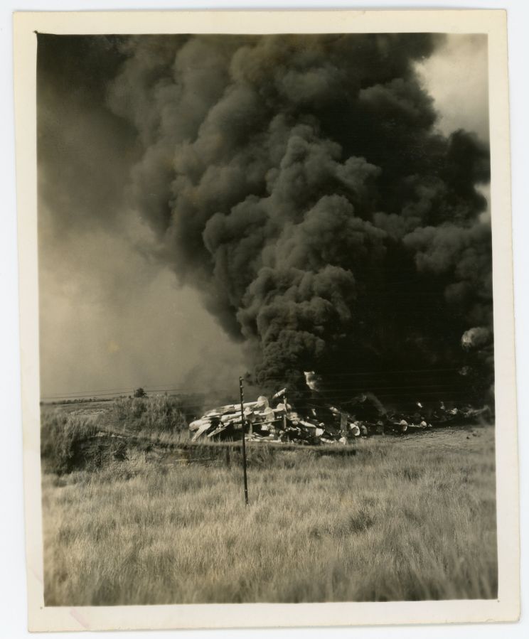 How do you dispose of damaged or obsolete fighter planes? Today they would be carefully recycled for their aluminum and other valuable metals, but in the post-war era the answer was to burn all.