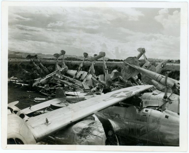 How do you dispose of damaged or obsolete fighter planes? Today they would be carefully recycled for their aluminum and other valuable metals, but in the post-war era the answer was to burn all.