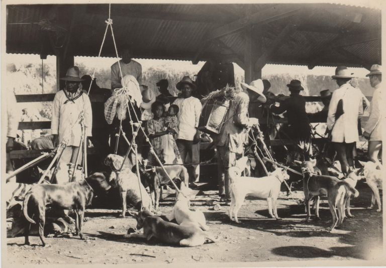 Subject: Vendors and customers at the dog meat market in Baguio. The Philippine dog meat trade is still primarily centered in Baguio. Historically, it was associated with celebratory events and ritual