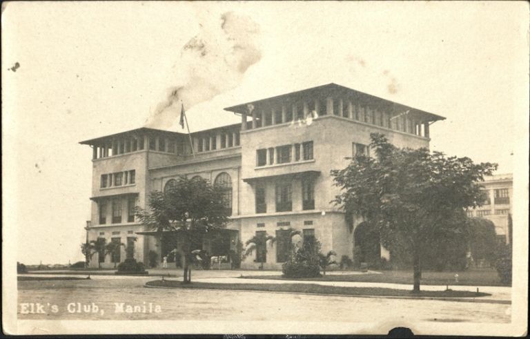 Subject: The charter for the Elks Club, a fraternal social club for Americans, was granted in 1902. This building was constructed in 1909 on reclaimed land at San Luis (Kalaw) and Dewey (Roxas), near