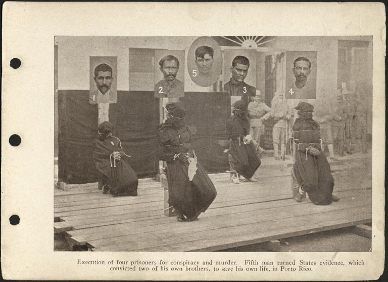Execution of four prisoners for conspiracy and murder. Fifth man turned States evidence, which convicted two of his own brothers, to save his own life in Porto [Puerto] Rico.