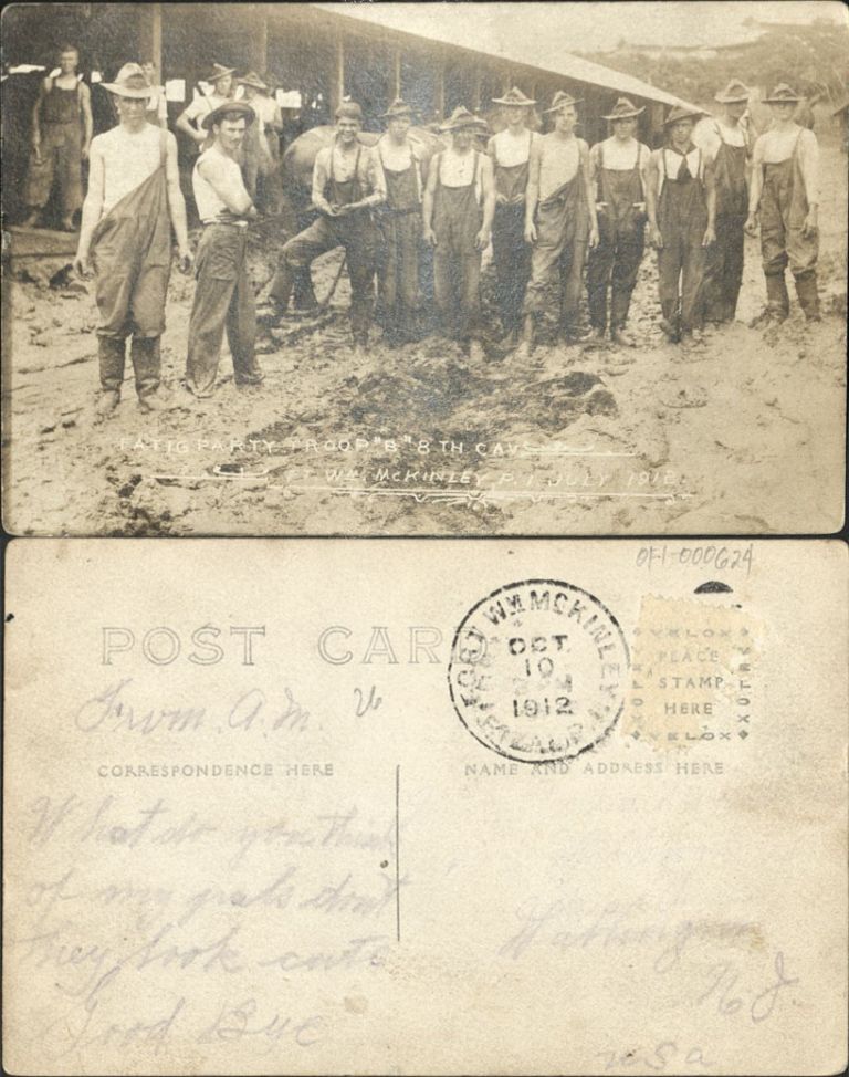 Fatig [Fatigue] party, Troop "B" 8th Cav. [Cavalry]. Ft. Wm. McKinley, P. I. July 1912.