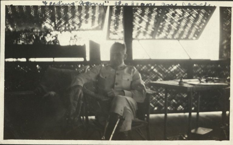 Subject: The handwritten caption is difficult to decipher, and the image is too dark to see what exactly he's feeding, but it looks like "deer." That's the husband of the album's creator (Kincaid?) li