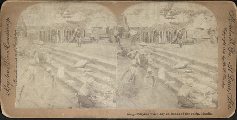 Keystone #K10003b. Filipinos washing clothes on steps down to Pasig River, Manila, Philippines.