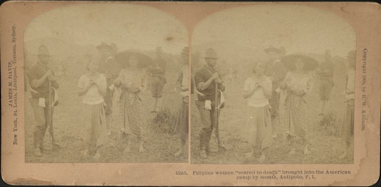 Filipino women "scared to death" brought into the American camp by scouts, Antipolo, P. I.