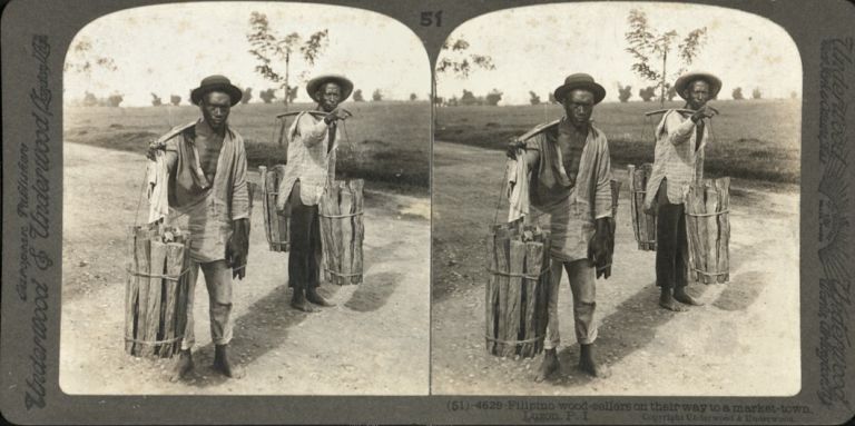 Filipino wood-sellers on their way to a market-town, Luzon, P. I.