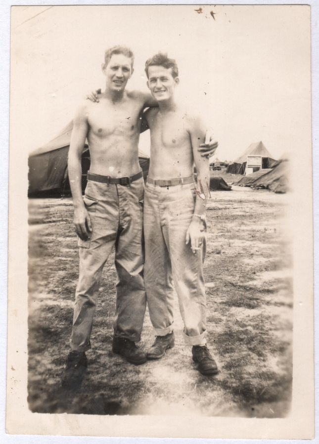Army buddies pose for the camera at Floridablanca Airfield (originally known as Del Carmen Field; now Basa Air Base). Floridablanca is a first class municipality in the province of Pampanga.