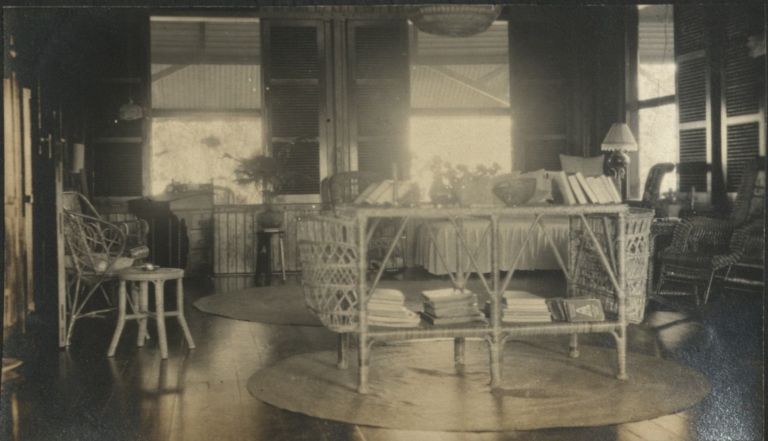 Subject: A living/sitting room in an officers' quarters at Fort William McKinley (now Fort Bonifacio), near Manila. Lots of rattan and wicker is evident.