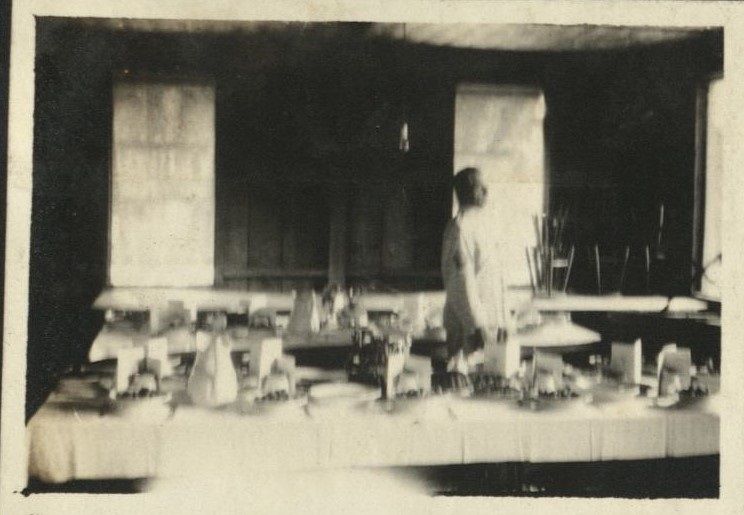 Subject: Series OFI-004640-4642 show the table settings, decoration, and food set up in preparation for Christmas dinner for the men of 8th Company (probably of the Coast Artillery), Fort Wint, Grande