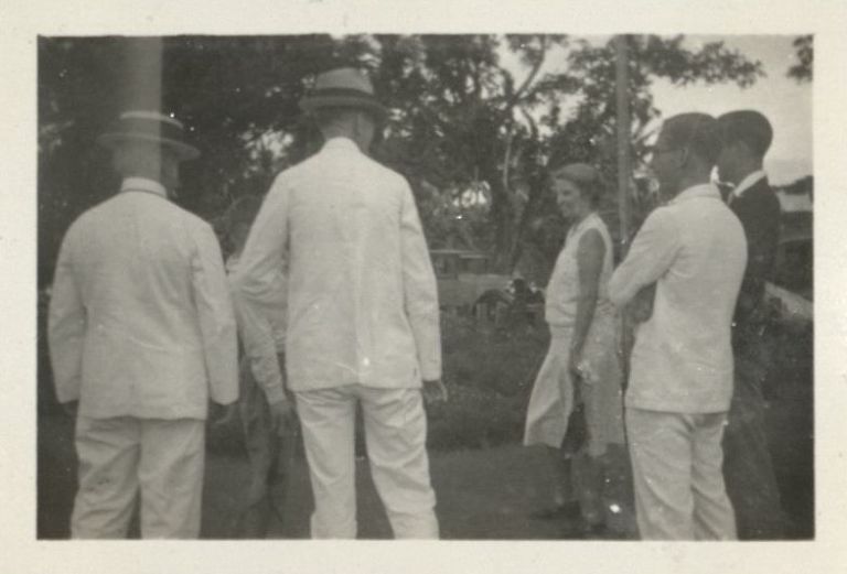 Subject: The Hawkins family and HArry Jr.'s friend Jim at the train station in Daraga, Albay. Arlington Ulysses Betts served as Governor of Albay Province from 1902�1904; he must have continued to l