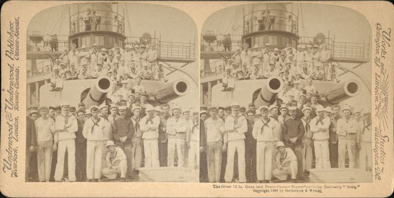 Underwood [unknown coding]. Crew poses around 13-inch guns on the battleship "Iowa."