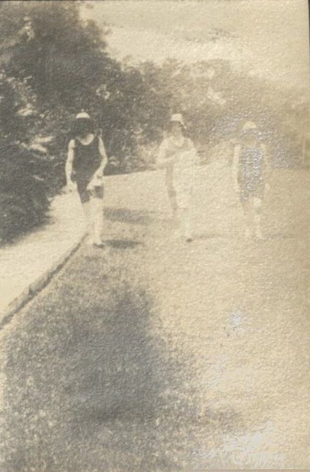 Subject: Three women in swimsuits walk in a road on Guimaras, an island province off Iloilo City on Panay. The Boardmans were apparently involved in mining on Guimaras.