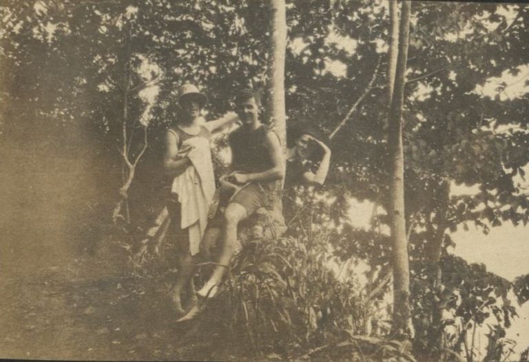 Subject: Swimmers pose by trees on a riverbank on Guimaras, an island province off Iloilo City on Panay. The Boardmans were apparently involved in mining on Guimaras.