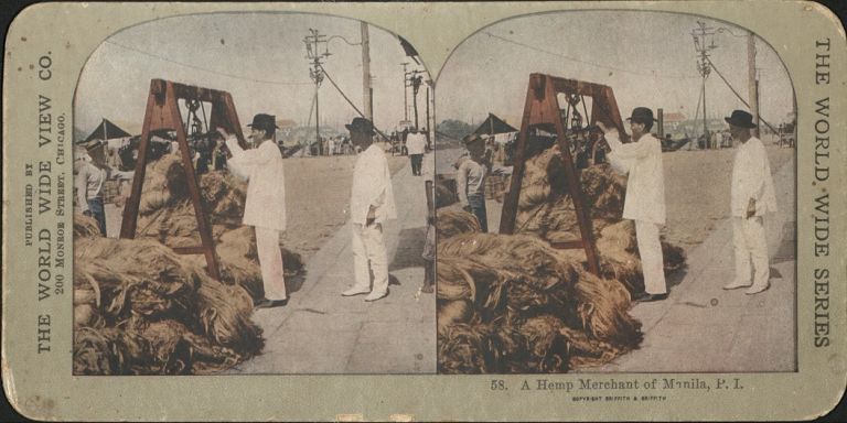 Griffith & Griffith #GG58. Filipinos stand around weighing scales with bundles of hemp (Abaca) fiber.