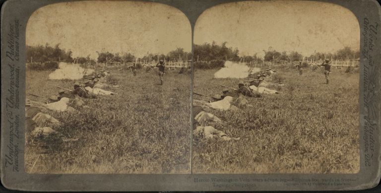 Heroic Washington Volunteers advancing - Filipinos 800 yards in front - Taguig, Philippines.