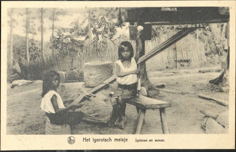 Het igoritsch meisje. Spinnen en weven. [The Igorot girl. Spinning and weaving].