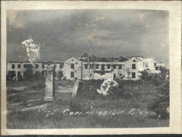 Subject: The chancery of what is now the U.S. Embassy in Manila was first constructed to house the United States High Commission to the Philippines. Here it is shown heavily damaged after the battle f