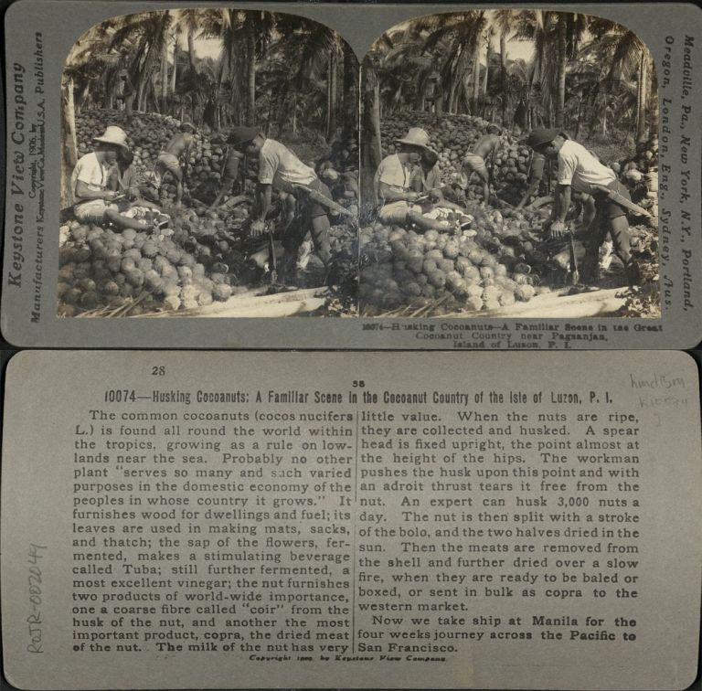 Husking Coconuts - A Familiar Scene in the Great Cocoanut [Coconut] Country near Pagsanjan, I. of Luzon, P. I.